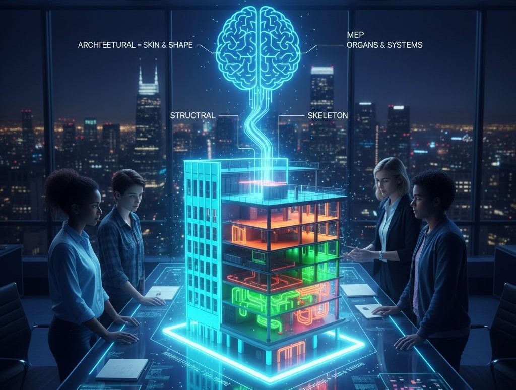 When you understand Architectural, Structural, and MEP systems as the skin, skeleton, and organs of a living body, BIM stops feeling complex and starts making sense.