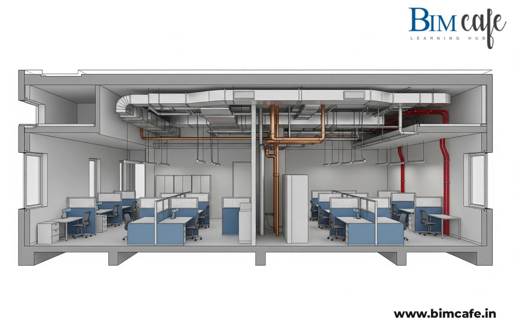 Interior design doesn’t exist in isolation—it must align with structural and MEP systems. BIM allows:
