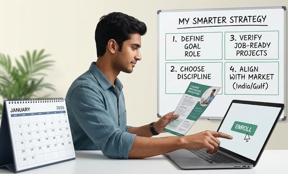 Rushing into a course because others are enrolling is rarely the right move. Taking time to define your goal, your discipline, and your target market — India or the Gulf — is what prevents wasted months and repeated learning.