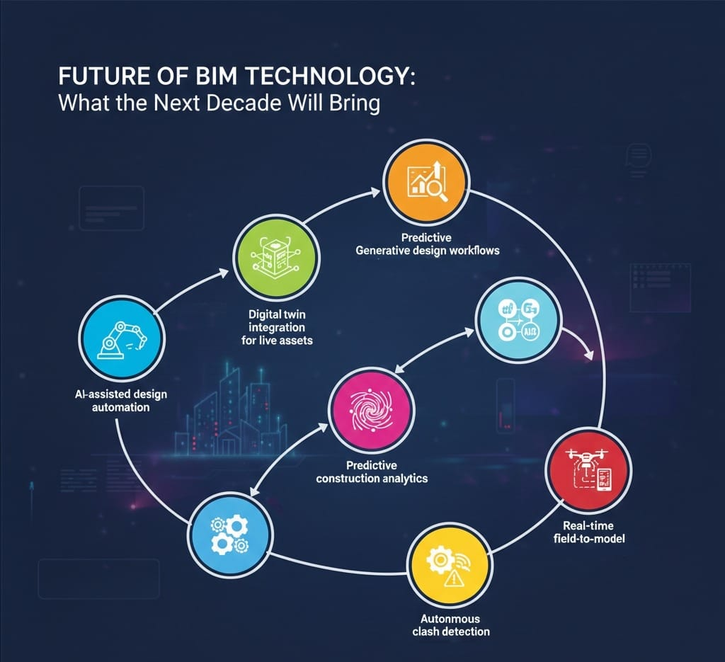 The future of BIM technology is moving toward highly intelligent, automated, and fully connected project ecosystems. The focus is shifting from isolated modeling toward predictive, data-driven infrastructure management.