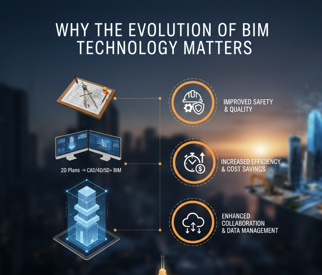 The evolution of BIM technology marks one of the most important digital transformations in the construction industry. From manual drafting and early CAD systems to intelligent digital twins and AI-driven workflows, BIM continues to redefine how projects are designed, coordinated, and delivered.